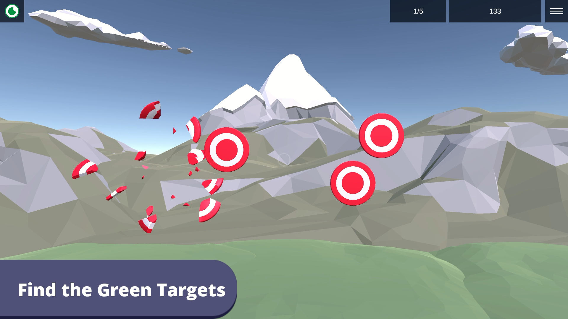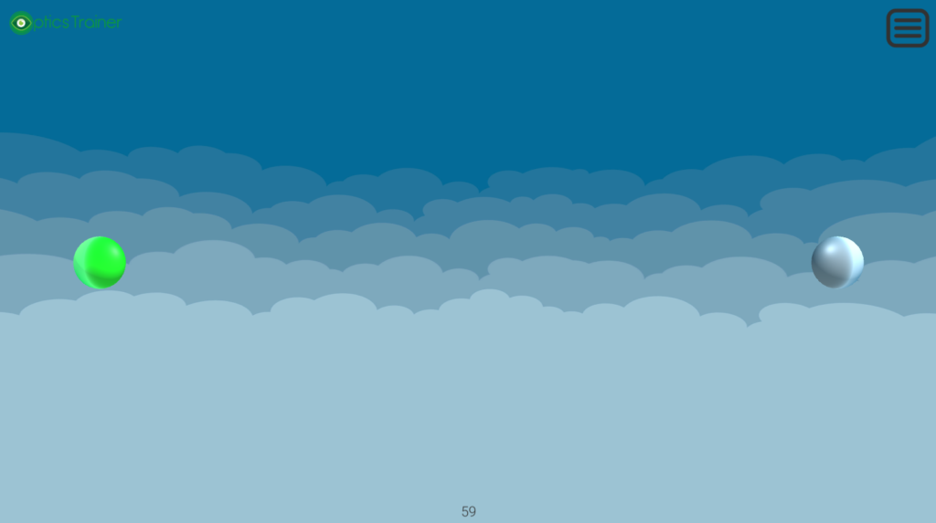The user looks at each sphere in a vertical or horizontal orientation as quickly as possible. Random mode may be selected as well, which varies the sphere’s location randomly throughout the screen.